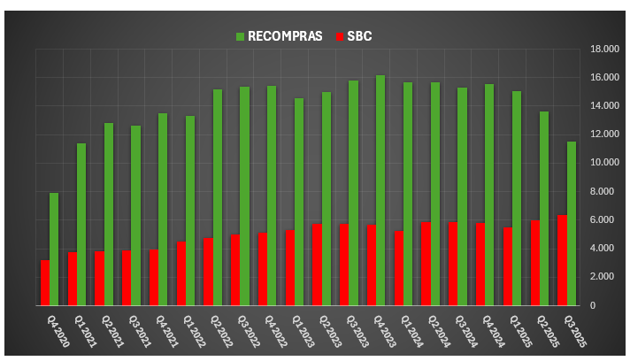 🧮 4. Comparativa entre recompras y SBC (stock-based compensation)